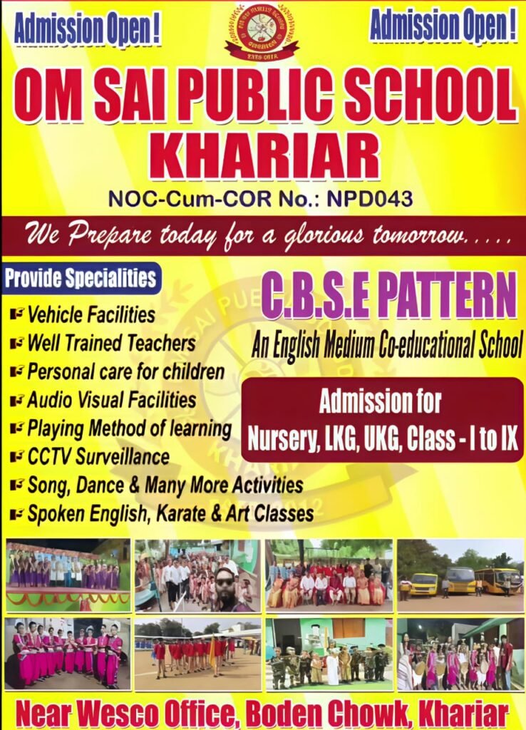 Established in 2012, Om Sai Public School, Khariar (Nuapada, Odisha) is a trusted CBSE-affiliated English medium co-educational school. We provide quality education, smart classrooms, modern labs, and a safe environment to help students learn with confidence.